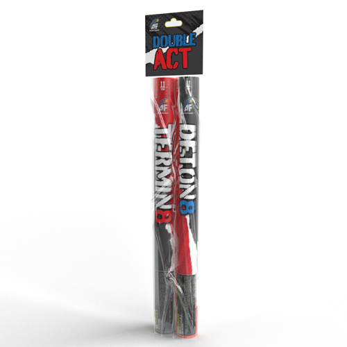 Presenting Double Act, a spectacular duo of large-calibre Roman Candles that brings classic pyrotechnic elegance to the modern age. This pair of 8-shot candles utilizes maximum 30mm bore tubes to launch massive individual shells, providing two distinct 30-second performances of pure power and precision.