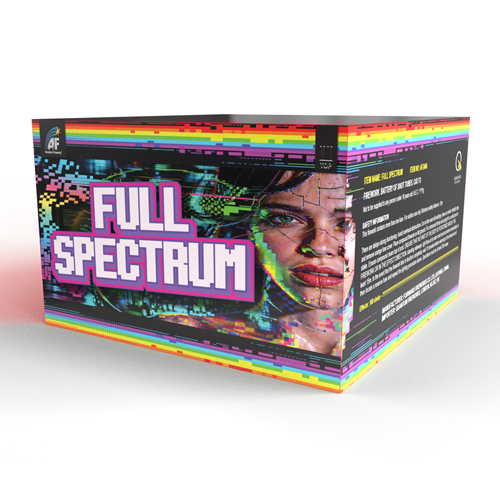 Full Spectrum is the ultimate choice for those who want a long-lasting, colour-rich performance without compromise. With its rhythmic firing and shimmering finale, it brings the variety of a full display into a single, high-energy unit.